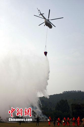 國(guó)家林業(yè)局西南航空總站派出一架“米171”直升機(jī)參與模擬火場(chǎng)撲救演練。據(jù)了解,國(guó)家林業(yè)局西南航空總站共配備了3架“米171”直升機(jī)用于森林火災(zāi)撲救。