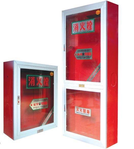 襯膠水帶(20或25米),消火栓(DN65),水槍(φ19),指示紅燈,報警按鈕,消防泵起泵按鈕,自救式消防卷盤(20或25米)。 【使用方法】 遇有火警時,根據(jù)箱門的開啟方式,按下門上的彈簧鎖,銷子自動退出,拉開箱門后,取下水槍拉轉水帶盤,拉出水帶,同時把水帶接口與消火栓接口連接上,拔動箱體內(nèi)公里壁的電源開關,把室內(nèi)消火栓手輪順開啟方向旋開,即能進行噴水滅火。